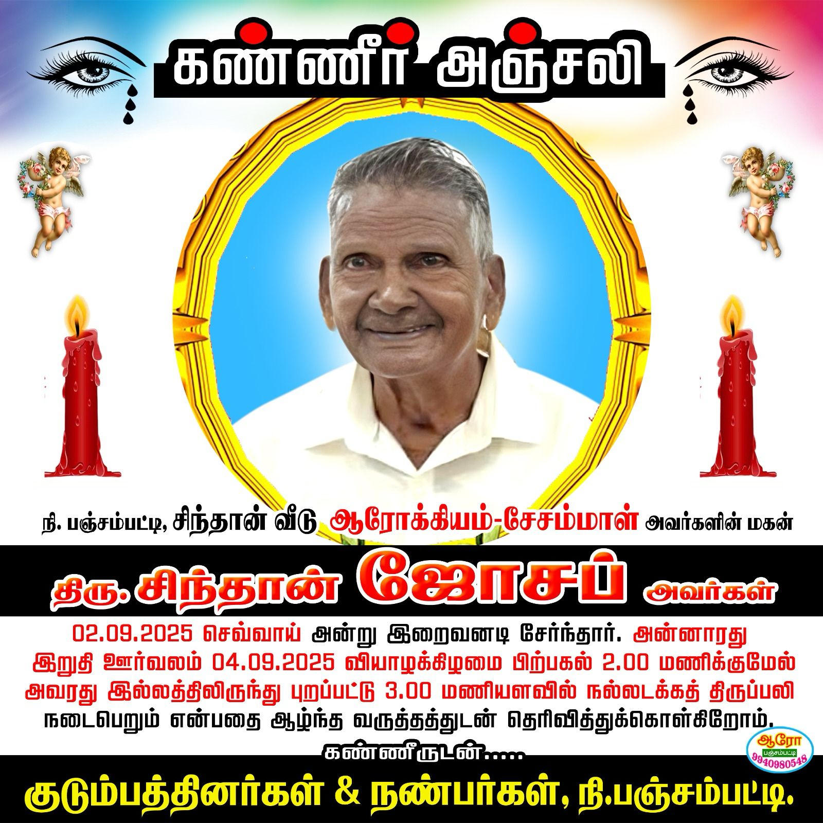 It's with deep sorrow that we announce the passing of Mr. Joseph, beloved father of Mr. John Kennedy. He passed away on September 2nd in India.